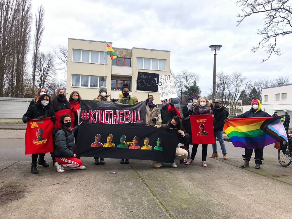 Homage to the Streets: #LOVEWINS is a powerful reimagining of protest banners originally created by Rüzgar Buşki and Va-Bene Elikem Fiatsi in February 2022. These banners were first printed for a demonstration in front of the Ghanaian Embassy in Berlin, protesting the proposed anti-LGBTQI+ bill in Ghana. At the time, they were distributed among activists as a visible symbol of solidarity and resistance.