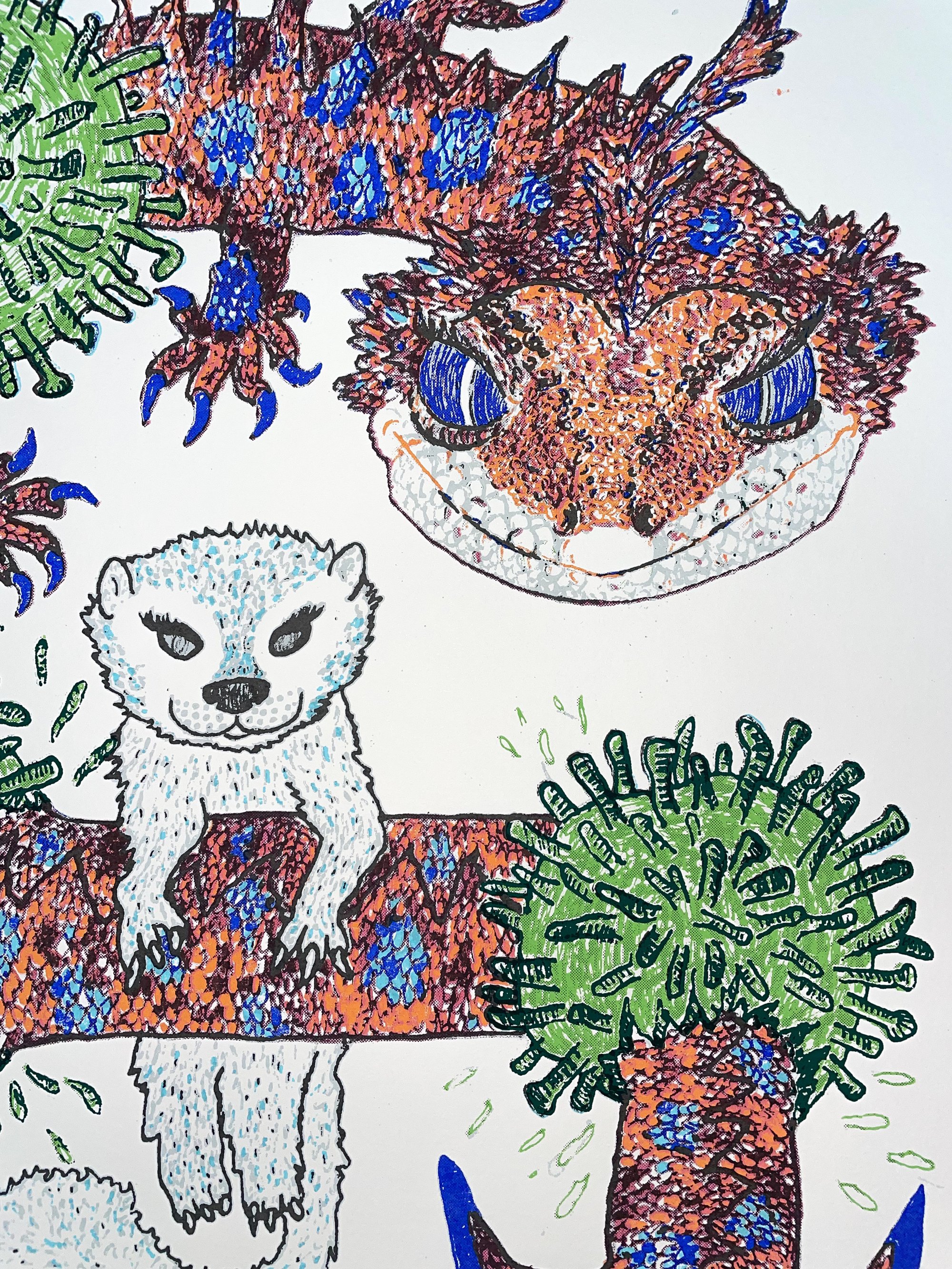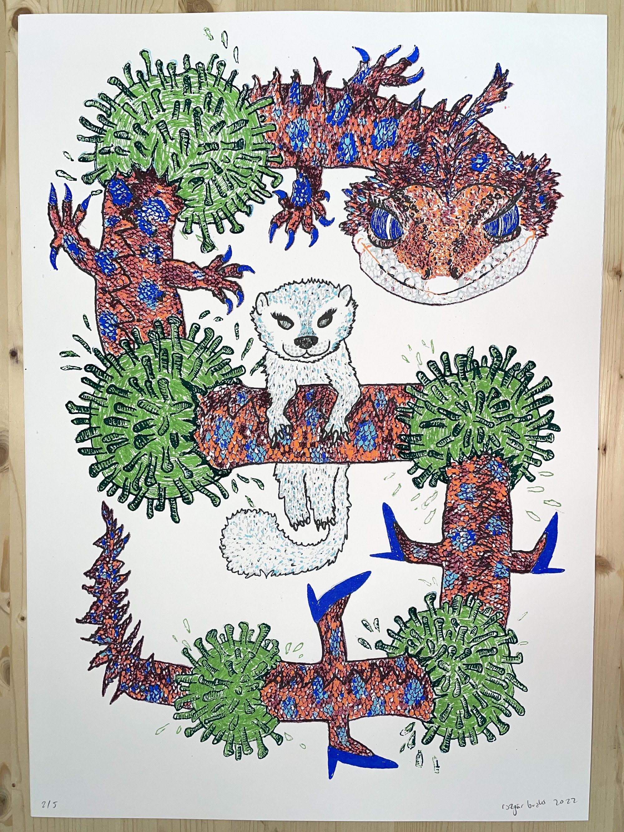 9 color screen print on 308gr Bristol Paper, 50x70, Edition of 5.